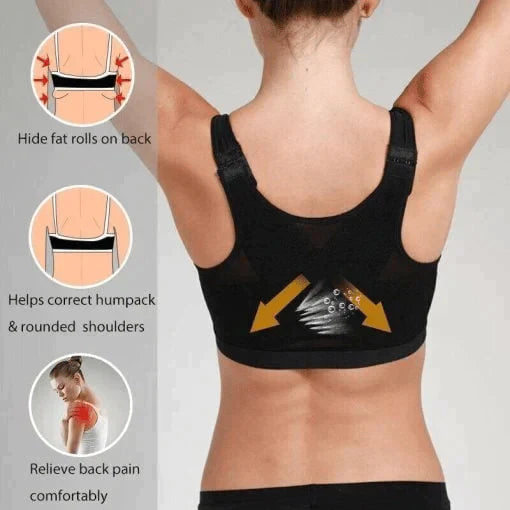 The design of 5D seamed cups, wide side wings, strong cushioned shoulder straps, and U-shape back panel ensures maximum support against sagging while smoothing back bulges and correcting armpit fats for a flattering silhouette.