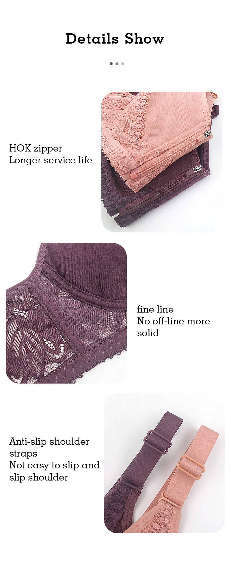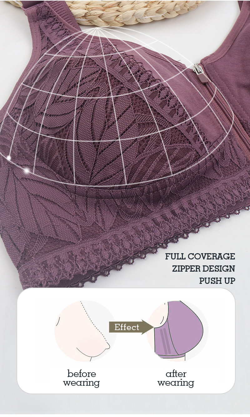 With smooth front zipper, it's easier than ever to put on your bra. The semi-auto lock zip helps keep it from coming unzipped, which means no more bra hooks snapping on the go. Enjoy ultimate comfort.
